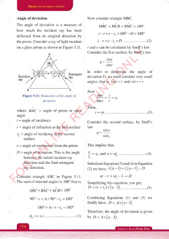 D = angle of deviation. This is the angle e = η, and e = ηi ……..............…...(4)