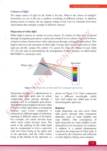 through a triangular glass prism, it splits into a band of seven colours. Figure 5.16 shows