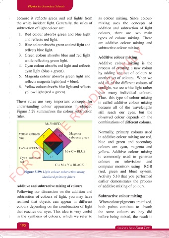 and reflects red light. types of colour mixing. These