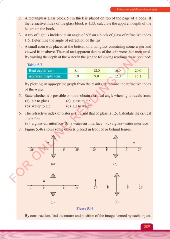 2. A rectangular glass block 5 cm thick is placed on top of the page of a book. If