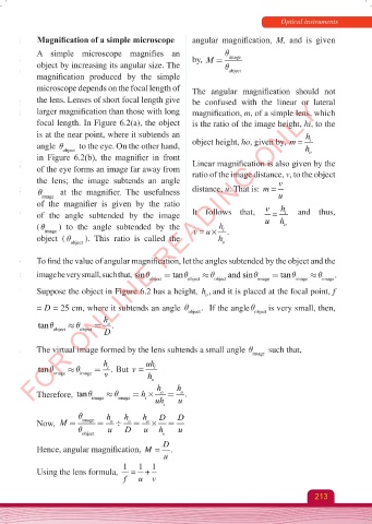 = D = 25 cm, where it subtends an angle θ object . If the angleθ object is very small, then,