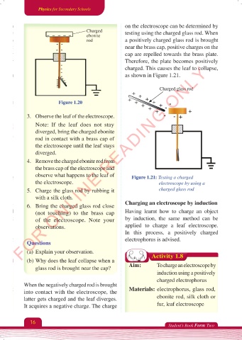 into contact with the electroscope, the Materials: electrophorus, glass rod,