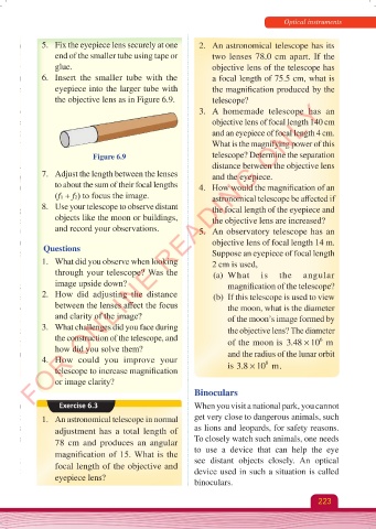 5. Fix the eyepiece lens securely at one 2. An astronomical telescope has its