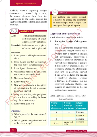electroscope leaf to collapse, causing it to an electroscope, then analyse and