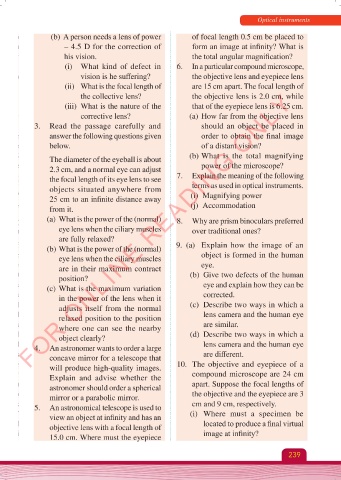 (b) A person needs a lens of power of focal length 0.5 cm be placed to