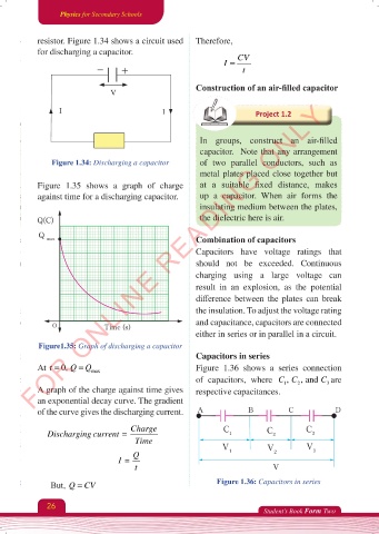 against time for a discharging capacitor. up a capacitor. When air forms the