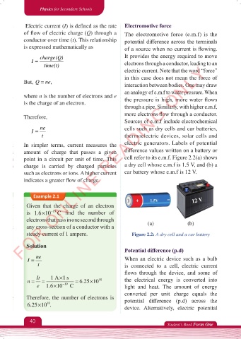 charge is carried by charged particles a dry cell whose e.m.f is 1.5 V, and (b) a