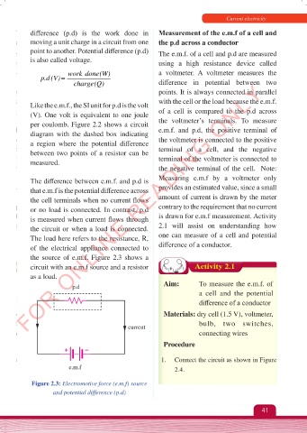 point to another. Potential difference (p.d) The e.m.f. of a cell and p.d are measured
