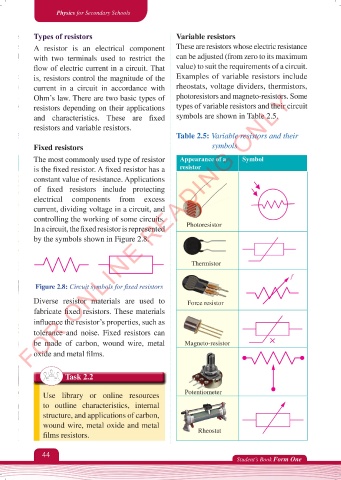 Table 2.5: Variable resistors and their