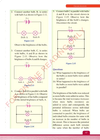 A as shown in Figure 2.14. Observe The brightness of the bulbs was reduced