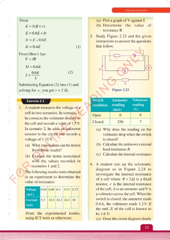 Voltage 0.04 0.08 0.2 0.21 0.22 of the cell, A is an ammeter and V is