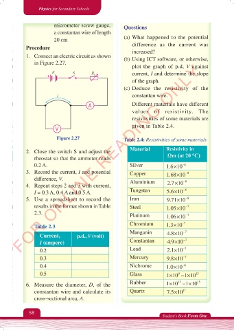 Figure 2.27 Table 2.4: Resistivities of some materials
