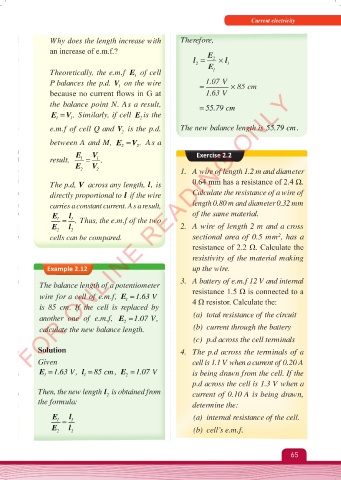 e.m.f of cell Q and V is the p.d. The new balance length is 55.79 cm.