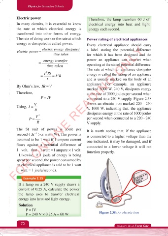P = 240 V × 0.25 A = 60 W Figure 2.38: An electric iron