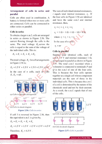 The total voltage, E for cell arrangements are arranged in parallel as shown in Figure