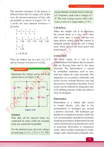 case, the internal resistances of four cells V. The total voltage (across AB) is the
