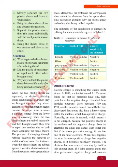 when the plastic sheets are rubbed electron that was removed can stay by itself or